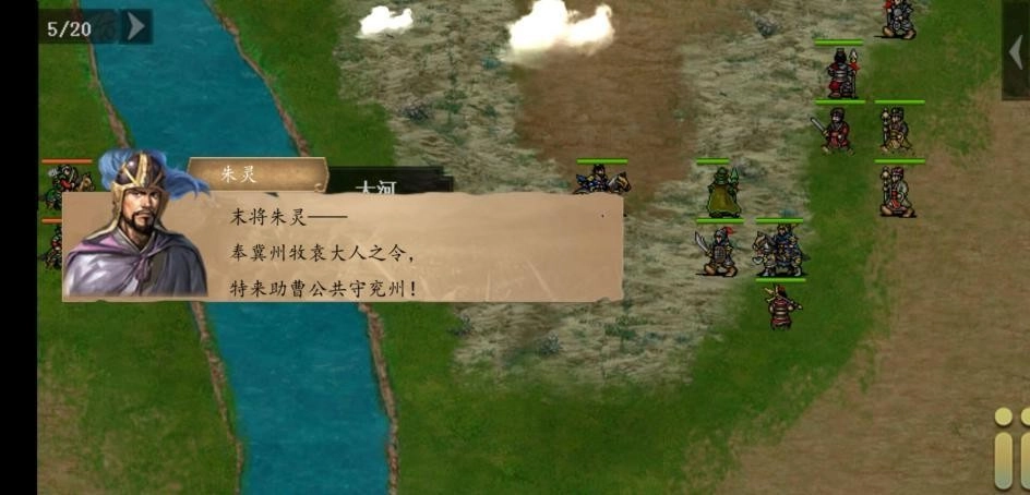 第五回,袁绍派来友军,朱灵在左上方登场,如果想让朱灵加入,本关就要保证朱灵不撤退。P S:朱灵在前两次出场中死亡过一次则无法加入,一定要慎重。 这段文本的意思是:在第五回中,袁绍派来的友军朱灵会在左上方出现。如果玩家希望朱灵加入己方队伍,就必须确保他在本关中不撤退。需要特别注意的是,如果朱灵在前两次出场时有过死亡记录,那么他将无法加入,所以玩家务必谨慎对待。