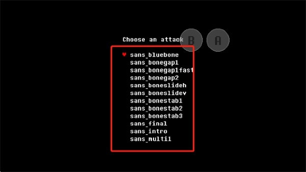 以下是修改后的文本: 以下展示的均为在“sans_bluebone”地图中的游戏表现,其中触碰蓝色骨刺能够恢复角色血量,而触碰白色骨刺则会导致角色血量减少。