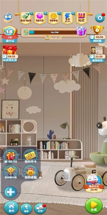 每次完成消除任务,都能顺利通关,还能解锁一系列家具。