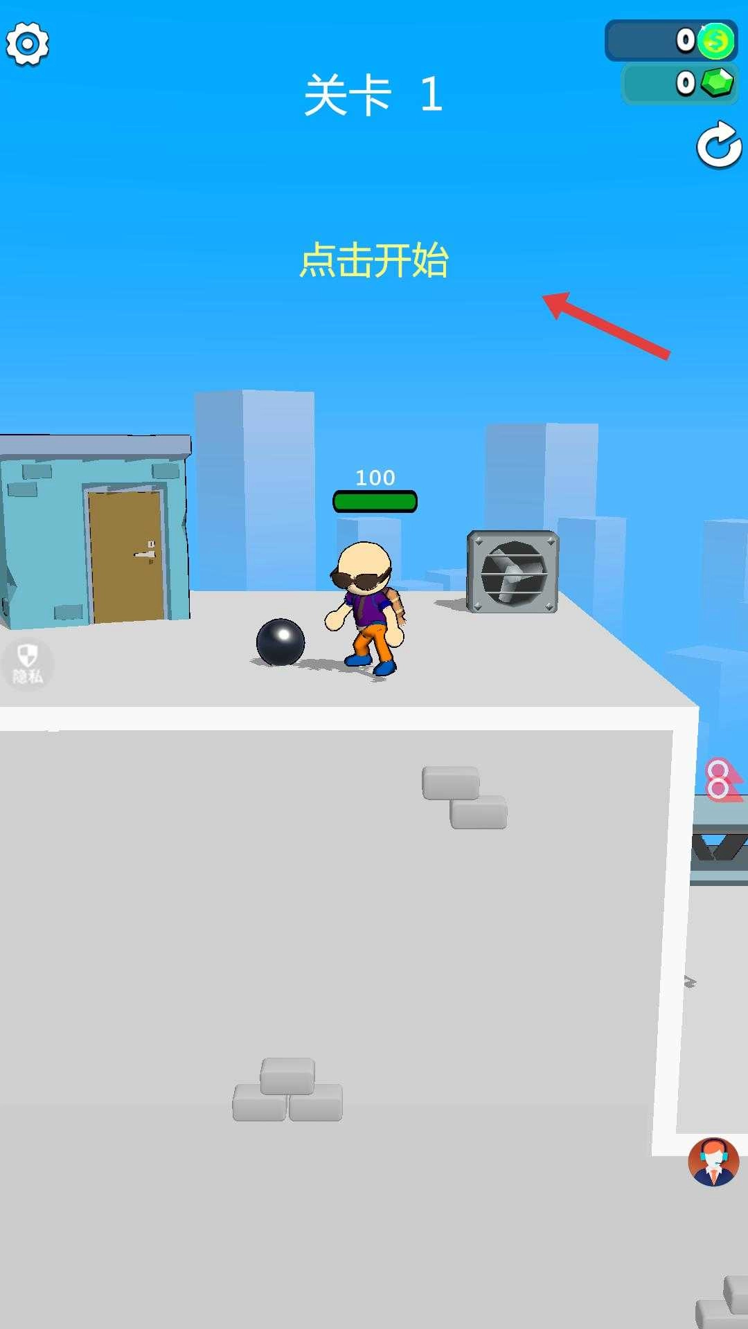 进入第一关,点击开始按钮,操控角色在场景中移动,场景内包含多种元素,做好迎接挑战的准备。