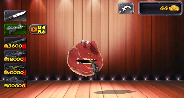 用厨枪射击牛排能快速完成调味,每成功调好一份牛排就可以得到金币奖励。