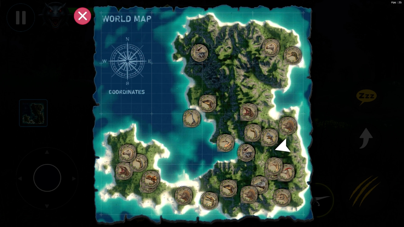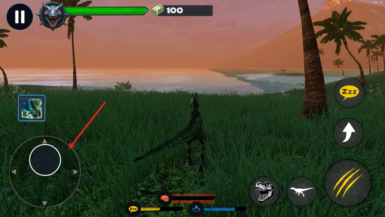 进入后,通过左侧的摇杆控制恐龙移动。