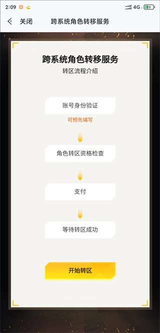 进入转区流程后,依次完成身份验证、资格检查与费用支付,之后等待转区操作完成即可。
