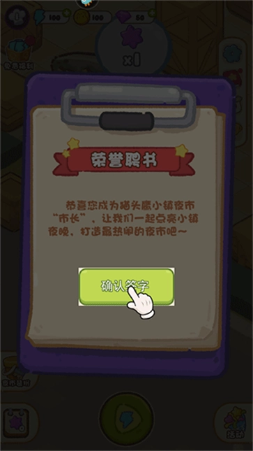 打开游戏,签约成为猫头鹰小镇夜市的市长。