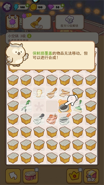 保鲜膜覆盖的物品无法移动,但是可以合成。
