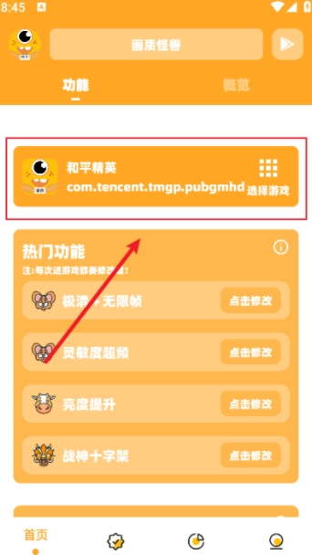 打开软件,在首页选择"和平精英"。