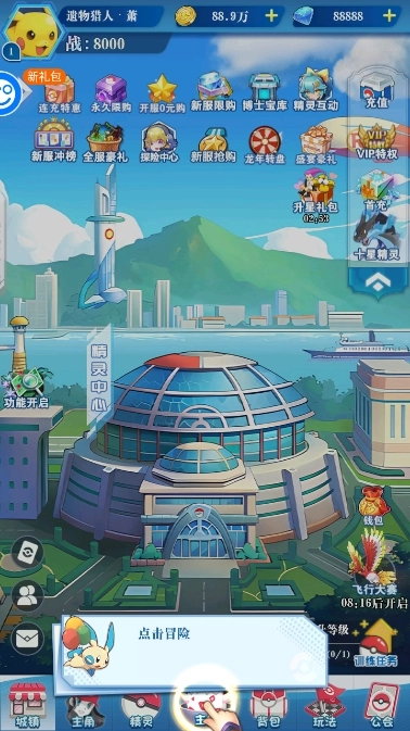 游戏主界面呈现出各类功能板块,玩家能在这里查看精灵的状态信息,还可以挑选不同的作战模式。