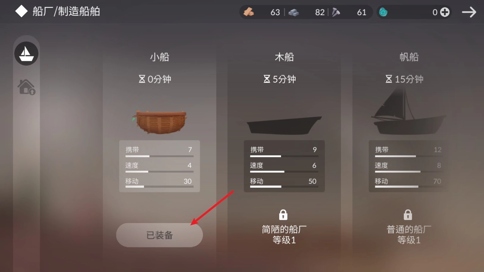 首先我们需要建造一搜小船才能出海。