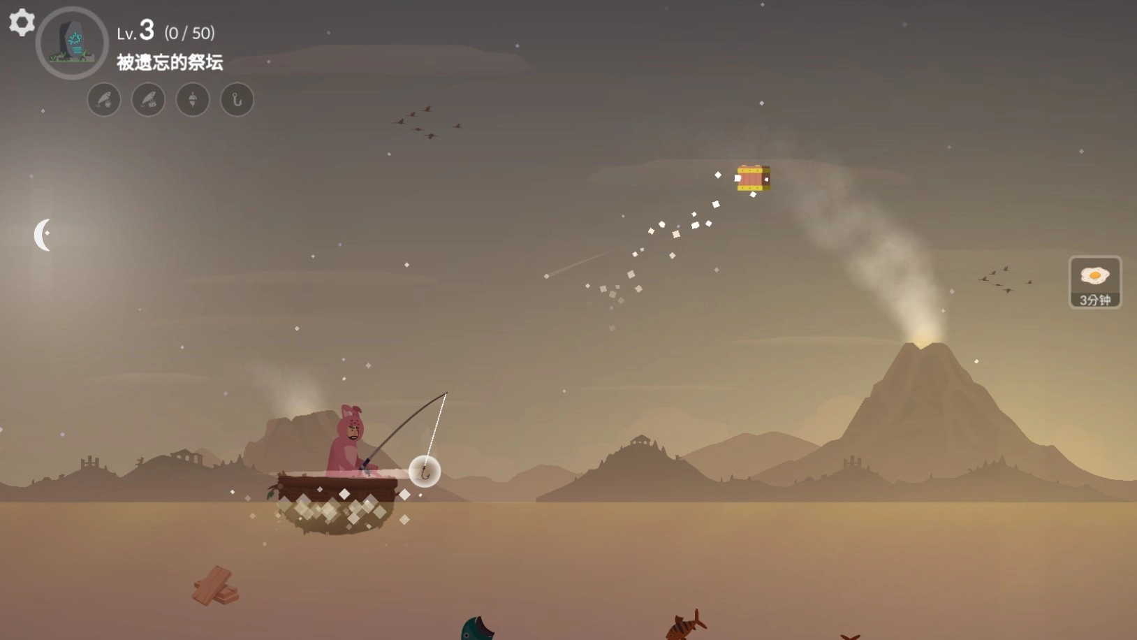 丰富的渔具:通过收集木材等资源,制作不同的船和鱼竿,逐步解锁更多的渔具和设备。