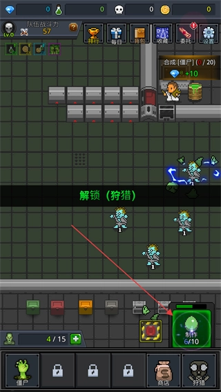 解锁狩猎功能,获取僵尸资源,积累低等级僵尸。