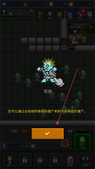 双击相同等级僵尸,点击确认按钮,进行合成操作。