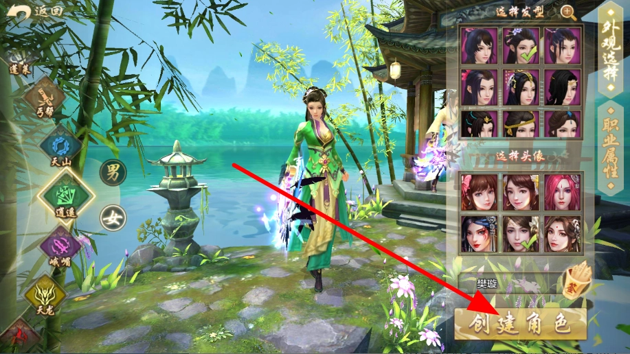 1、创建角色时,可在职业、发型、头像等外观选项里挑选心仪的样式,选好后点击创建角色,即可进入游戏世界。