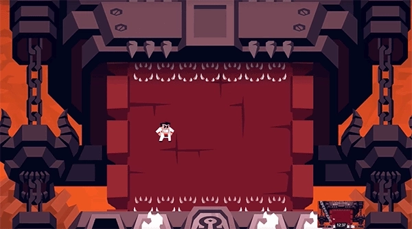 2、第一阶段很简单,只要待在中间位置,必要时挪开就行。等屏幕停止滚动后,就去攻击两侧的链条来通关。这一阶段boss不会对你发起攻击。
