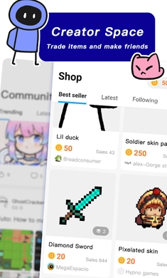 商店系统:玩家可以在商店购买游戏素材、音乐等资源,也可以将自己的素材上传到商店出售,实现价值最大化。