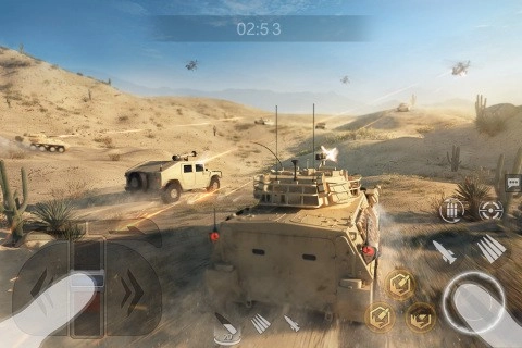 4、在武装直升机、主战坦克和装甲车间自由切换,体验陆地与天空三维一体化的全方位竞技模式。