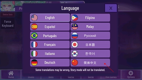 1、进入游戏后,在主界面点击右下角【爱心图标】,可以设置【简体中文】