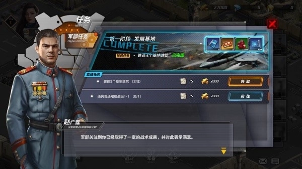 3、任务系统:游戏内军部发布的任务指示会显示在左下角位置,具体如图所示: