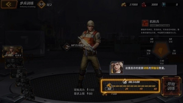 以步兵训练为例,这里呈现的是现役训练人员与预备役人员的数量情况。