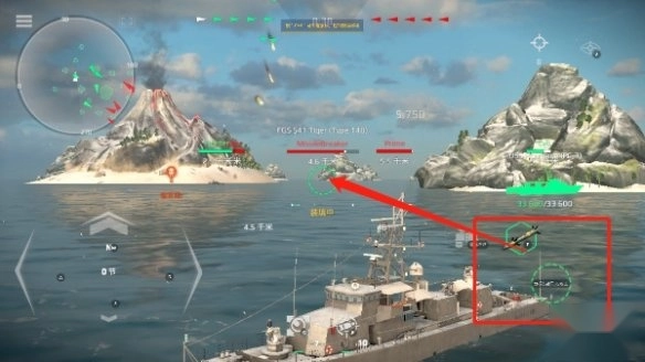 5、若发现敌方战舰,可通过滑动屏幕调整武器瞄准方向,点击如下图所示位置,就能快速开火射击。