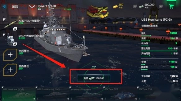 3、完成购买后,返回主菜单,点击“进入战斗”这一选项,就能使用刚购买的新战舰投入战斗。