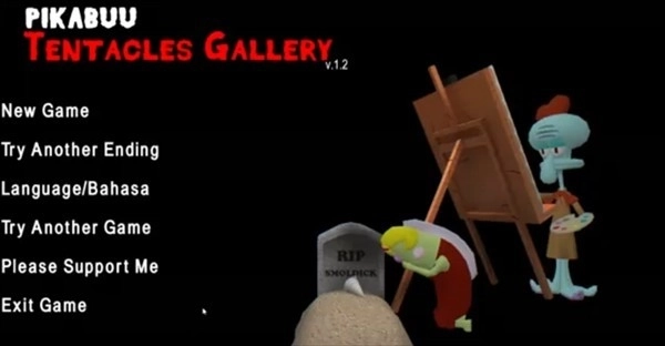 2、在章鱼哥的画作旁,能钓出一座坟墓和一个抱头痛哭的女人
