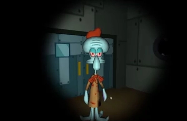 5、当海绵宝宝被章鱼哥伤害后,在粉碎机那里切换到自由视角,就能找到一张带有彩蛋的二维码图片。
