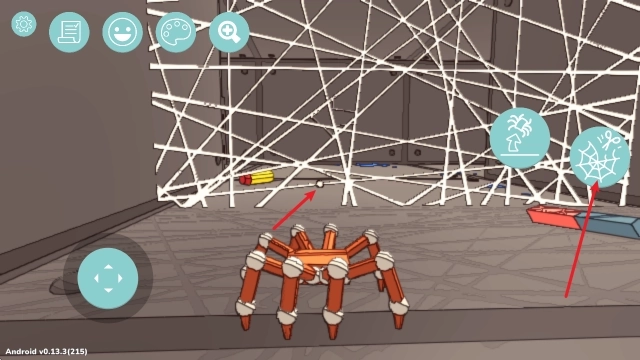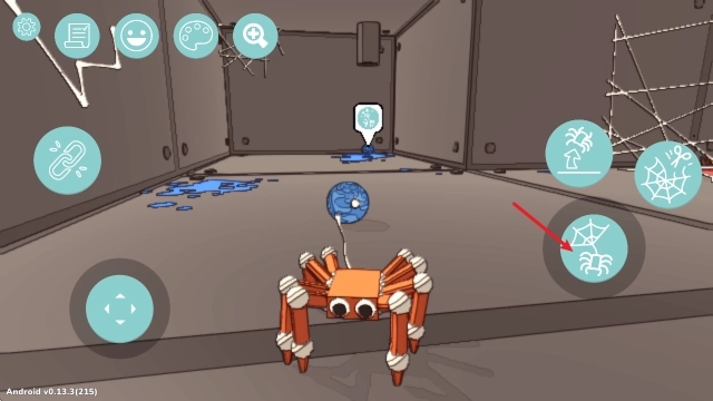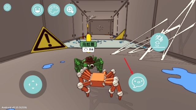 1、进入游戏后,拖动左侧摇杆就能操控蜘蛛移动,等靠近角色后,点击右下角的按钮就能完成互动啦。