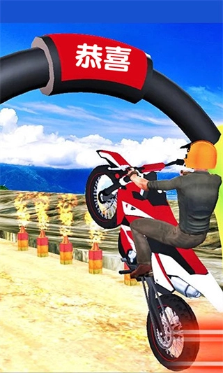3、通过操控摩托车的速度与方向来完成炫酷的特技动作,同时也可以运用各类道具