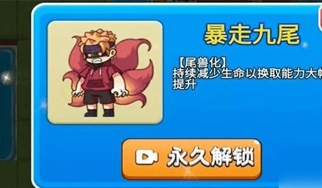 7、暴走九尾技能介绍:【尾兽化】持续减少生命以换取能力大幅提升。