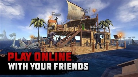 《木筏生存多人》是一款主打多人在线玩法的建筑生存游戏。玩家能与好友联机协作,搭建专属木筏前往不同区域搜集资源,进而制作各类道具与装备,开启海上生存冒险。旅途中,合理运用挂钩等工具获取关键物资,是支撑漂泊生存的重要保障。