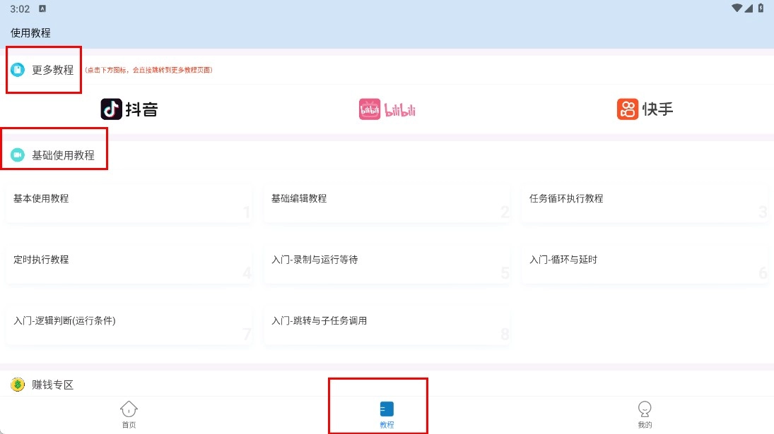 在【教程-页面】中,你可以选择【更多教程】或者【基础使用教程】,从而学习软件的操作方法。