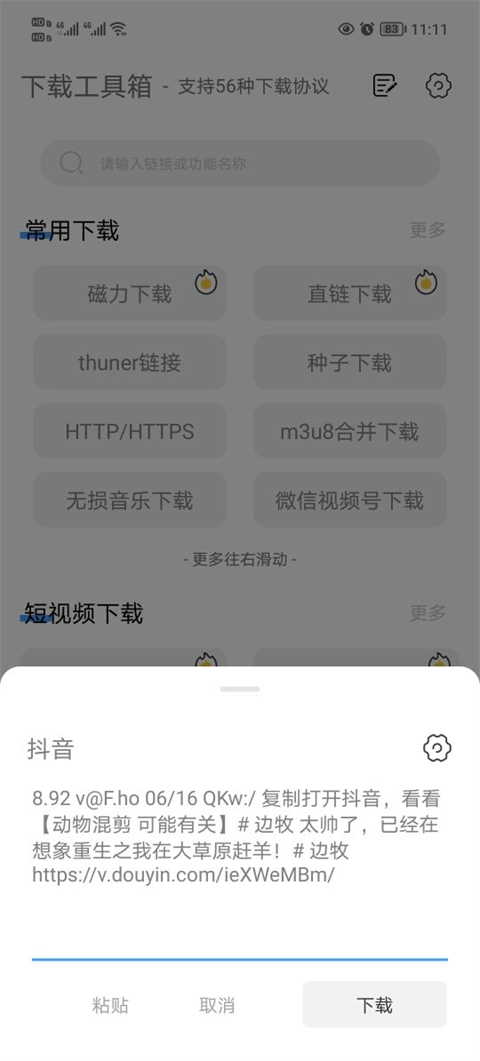以抖音视频为例,将复制的抖音视频链接粘贴,点击。