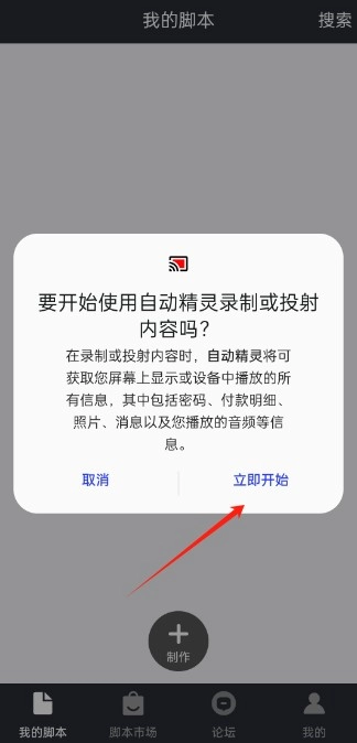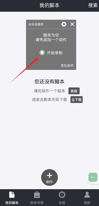 开启无障碍功能后,界面上会出现一个脚本悬浮窗,我们只需点击悬浮窗中的“开始录制”按钮,就能创建脚本视频了。