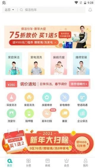 1、上门保洁/深度保洁/擦玻璃/新房开荒/家居保养/除尘除螨/厨房保养/卫生间保养/企业保洁