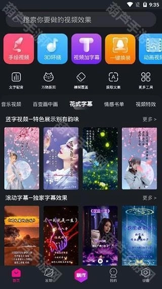 2、在界面里,大家可以自由挑选手绘视频、3D环绕、视频加字幕、一键换装以及一系列视频剪辑项目,为自己的视频增添更多亮点。