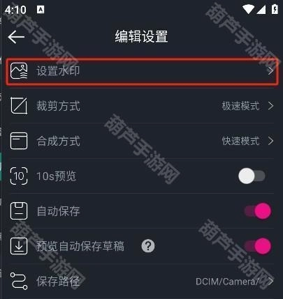 4.然后找到“水印设置”的选项点击进入。