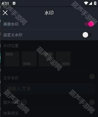 5.在水印设置页面中将“美册水印”选项开启。