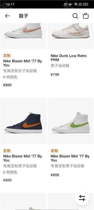 点击右上角的三条杠-专属定制-选择自己喜欢的鞋款