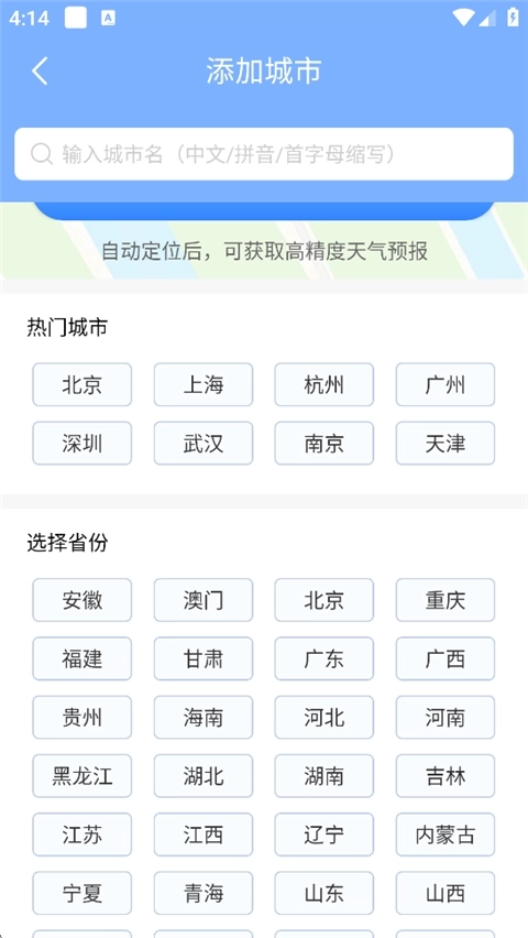 1. 城市添加功能:支持自动定位当前所在位置,也可手动添加需要的城市,能便捷满足各类使用需求。