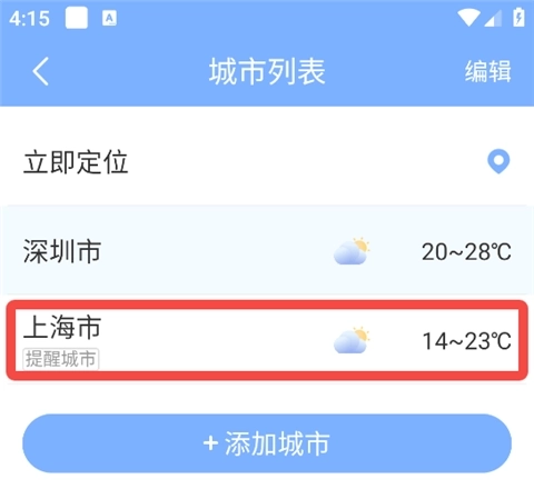 2、点击【添加城市】。