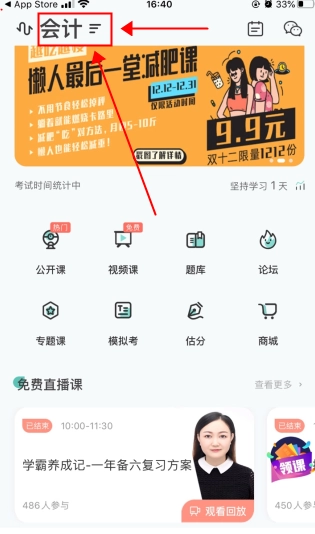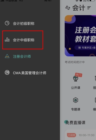 2、在弹出的选项里选中“会计中级职称”,就能轻松实现模式转换。