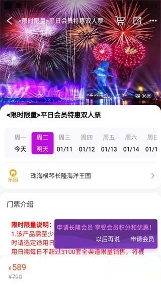 5、选好之后,小伙伴们就能直接下单买门票啦,不过买之前不妨先试着申请会员再购买,会有惊喜哦;