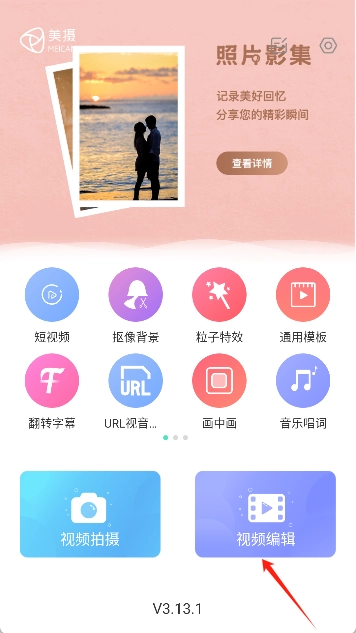 1. 打开美摄,在主界面点击“视频编辑”功能。