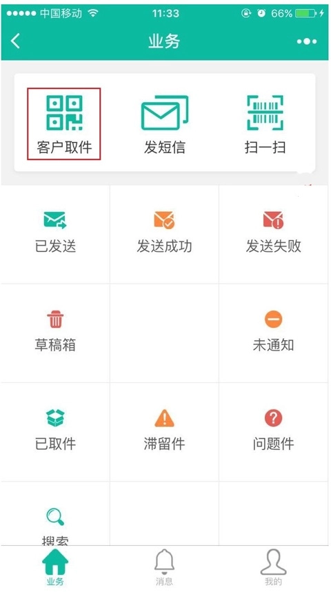 2、在首页的上方点击“客户取件”功能。
