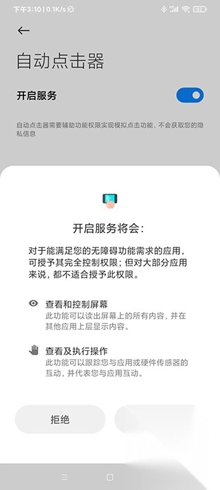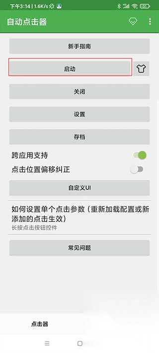 5、找到“自动点击器”,也是默认关闭的,需要开启;