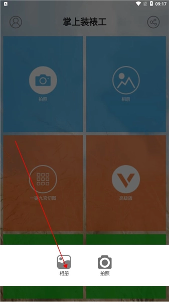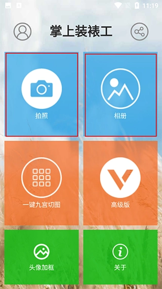 1、打开软件后,里面有拍照和相册为两种选择图片的方式