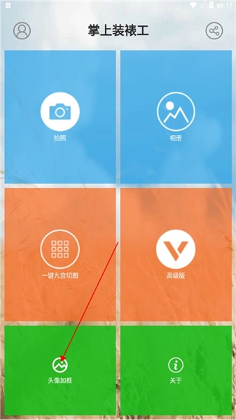 1、在本站安装并打开掌上装裱工,进入软件后点击头像进入页面。