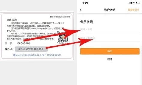 4、注册完成以后,界面将会跳转进入激活界面,按照步骤填写我们汇中考学习卡背面的卡号以及激活码,如图所示;