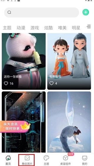 1、点击“静态图片”菜单,选择微信或QQ壁纸。