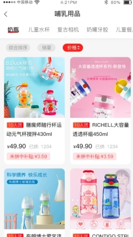 2、软件内可供用户选购的商品种类相当丰富,涵盖哺乳用品、洗护用品、儿童食品、品牌护理等各类商品资源。